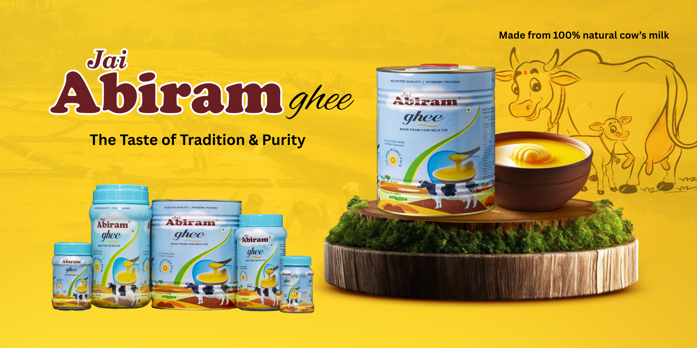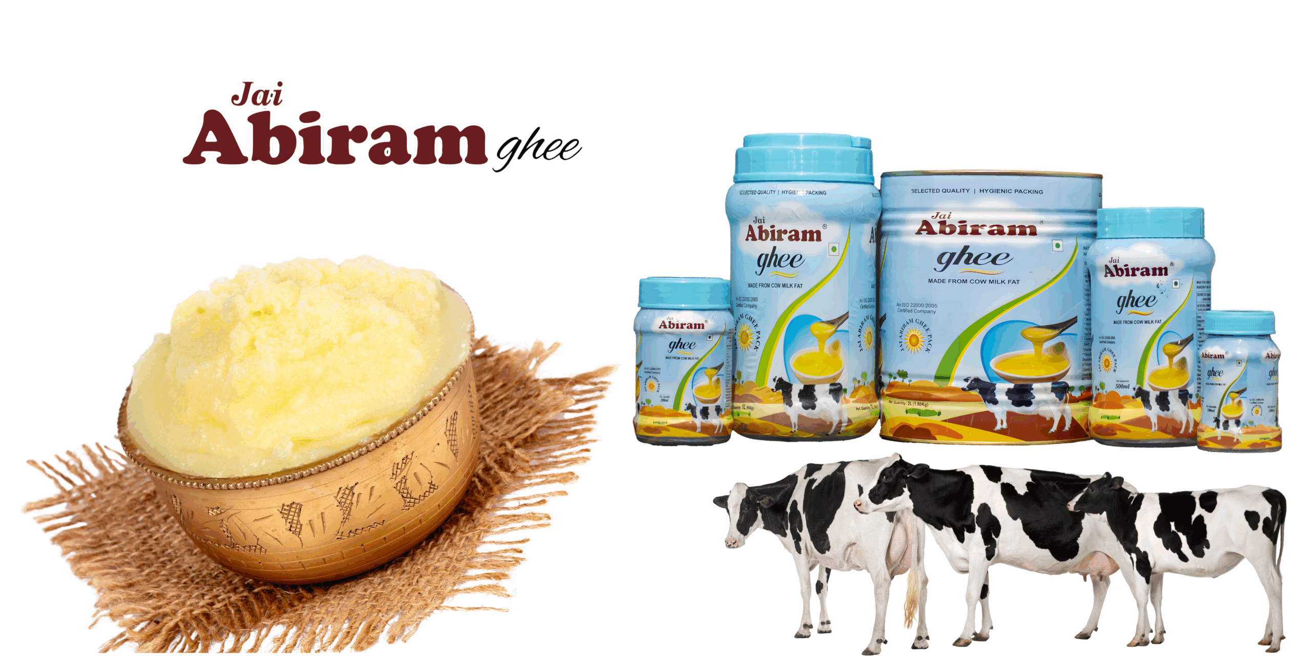 Discover 100% natural, farm-fresh ghee made from pure cow’s milk. At Jai Abiram Ghee, we follow the age-old bilona (traditional churning) method to ensure every drop of ghee retains its authentic aroma, flavor, and nutrients.